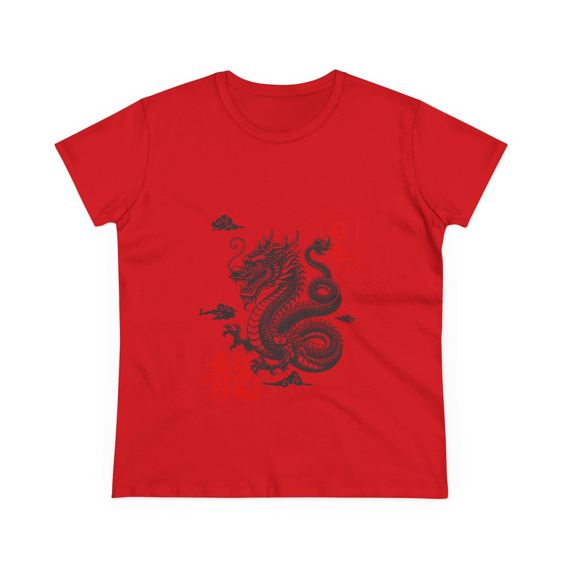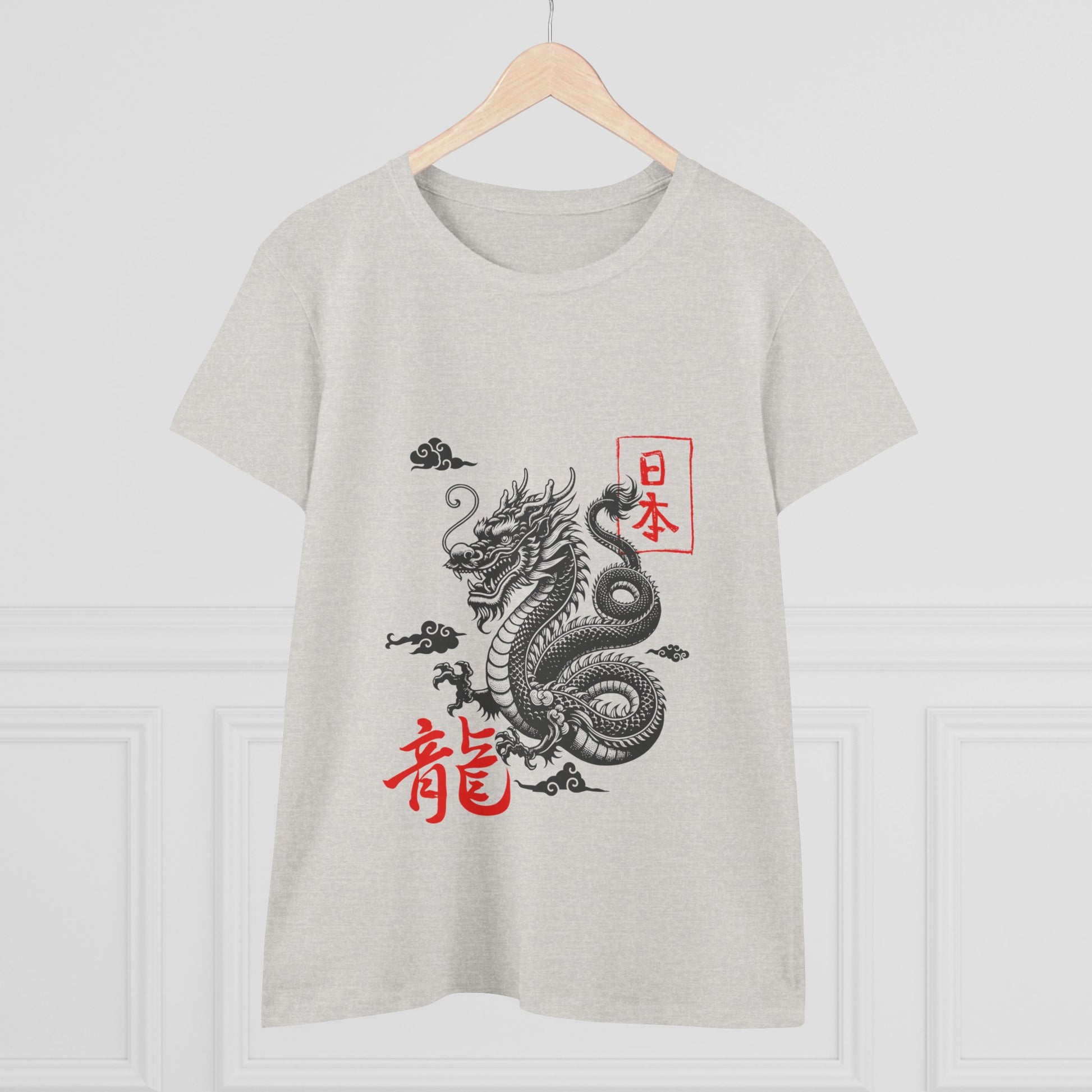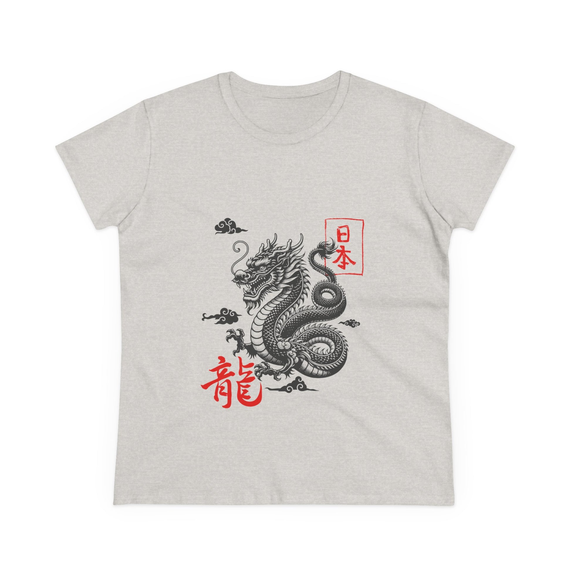 This midweight cotton tee brings old-world East Asian inkwork to everyday wear. A finely detailed, coiling dragon sits at center stage in soft grayscale, punctuated by hand-brushed red kanji that lend contrast and energy. The semi-fitted cut and medium-weight fabric make it easy to layer under a jacket or wear solo on warmer days. It’s the kind of shirt that reads thoughtful and deliberate — worn by someone who values craft, quiet confidence, and artwork that tells a story. The tear-away label and reinforced seams mean the design keeps its place in your rotation without losing shape or comfort.