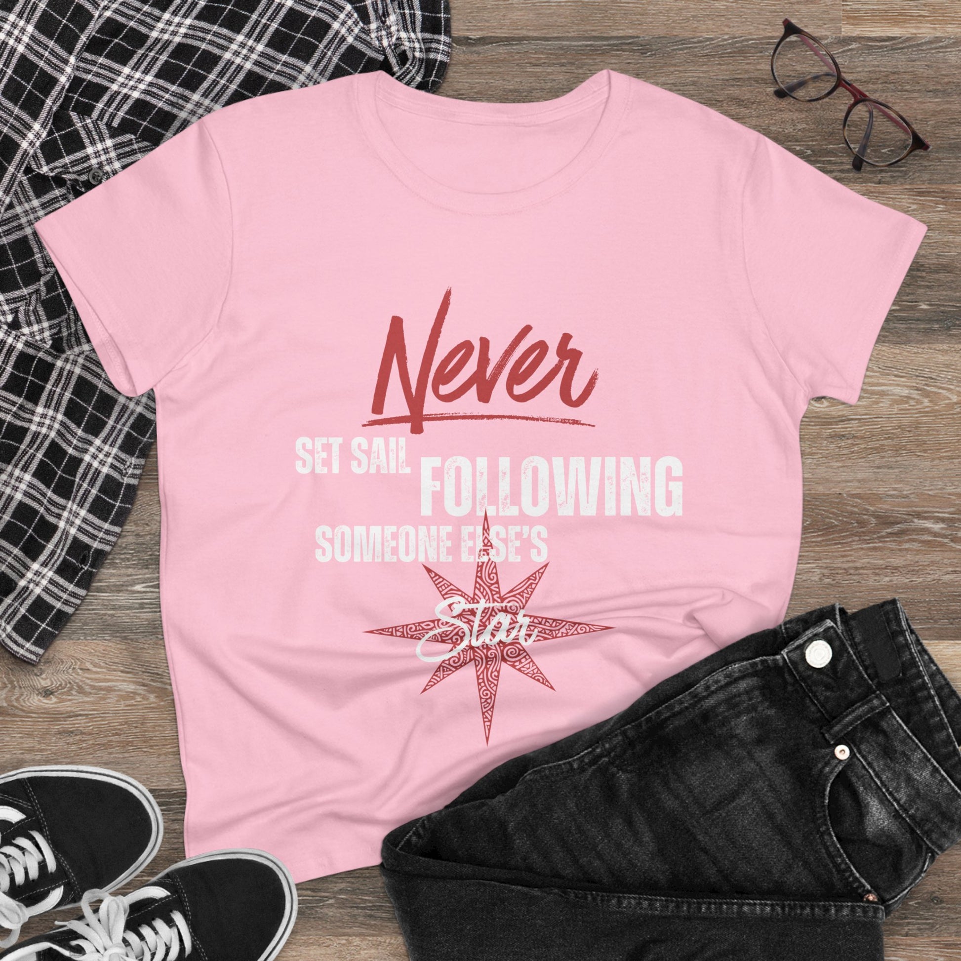 Never Set Sail Women's Tee, White Text